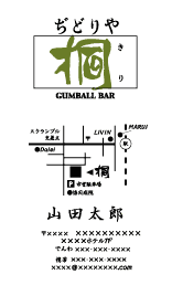 ショップカードと名刺を同一デザインにした例です。これだと、ショップカードを大量に印刷しておいて、後から肩書き・氏名等を刷り込めばいろいろ対応でき、単価を下げることが可能です。(左がショップカード、右が名刺)
